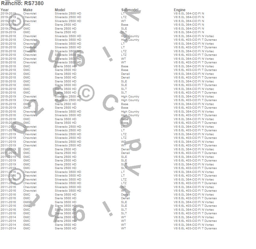 Below is an abbreviated list of applications for the RS7000MT Monotube Shock.