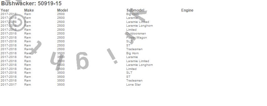 The innovator and creator of the fender flare category, Bushwacker¿ is a U.S. manufacturer of aftermarket and OE automotive accessories. The company specializes in quality products for trucks and Jeeps, utilizing ISO/TS standards with on-site design and tooling resources. Products include fender flares, bedrail caps, tailgate caps, and trail armor. Bushwacker is backed by more than 50 years of innovation and industry-leading customer service.