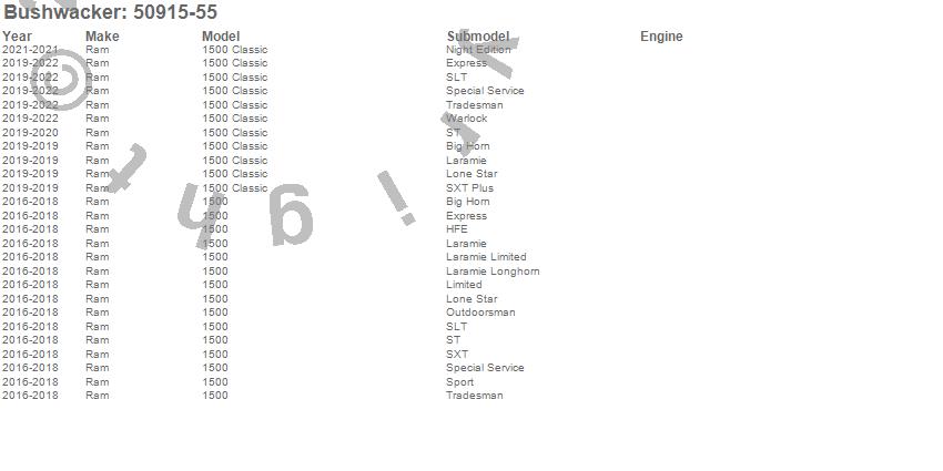 The innovator and creator of the fender flare category, Bushwacker¿ is a U.S. manufacturer of aftermarket and OE automotive accessories. The company specializes in quality products for trucks and Jeeps, utilizing ISO/TS standards with on-site design and tooling resources. Products include fender flares, bedrail caps, tailgate caps, and trail armor. Bushwacker is backed by more than 50 years of innovation and industry-leading customer service.