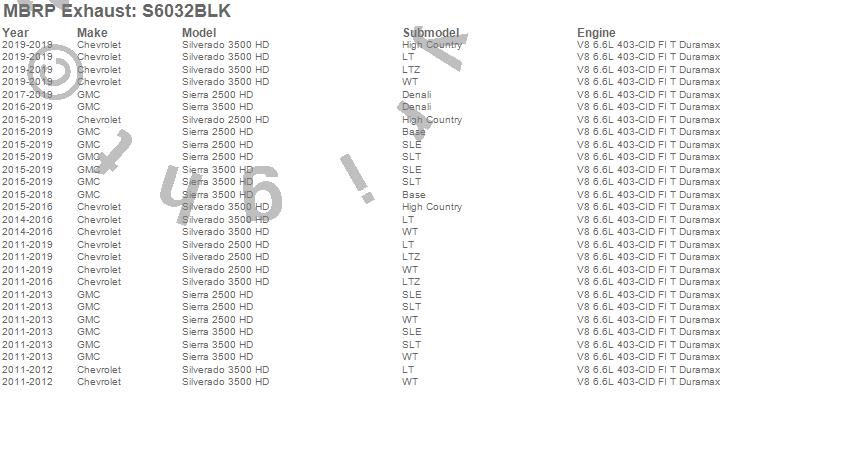 Below is an abbreviated list of applications for the Armor BLK Filter Back Exhaust System.