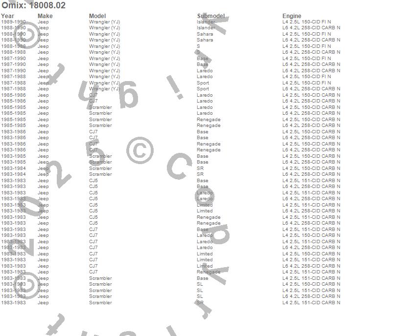 CJ5, CJ7, Scrambler, Wrangler (YJ), Jeep, 1990, 1989, 1988, 1987, 1986, 1985, 1984, 1983