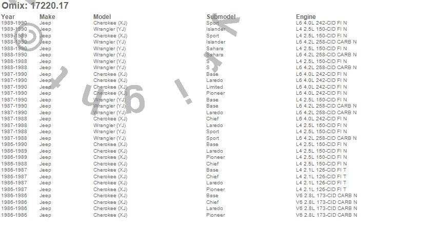 Cherokee (XJ), Wrangler (YJ), Jeep, 1990, 1989, 1988, 1987, 1986