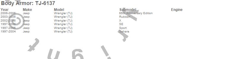 Body Armor - Trail Doors P/N TJ-6137 Features: