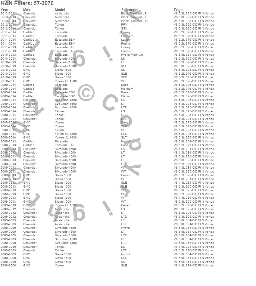 Avalanche, Escalade, Escalade ESV, Escalade EXT, Sierra 1500, Silverado 1500, Suburban 1500, Tahoe, Yukon, Yukon XL 1500, Cadillac, Chevrolet, GMC, 2014, 2013, 2012, 2011, 2010, 2009
