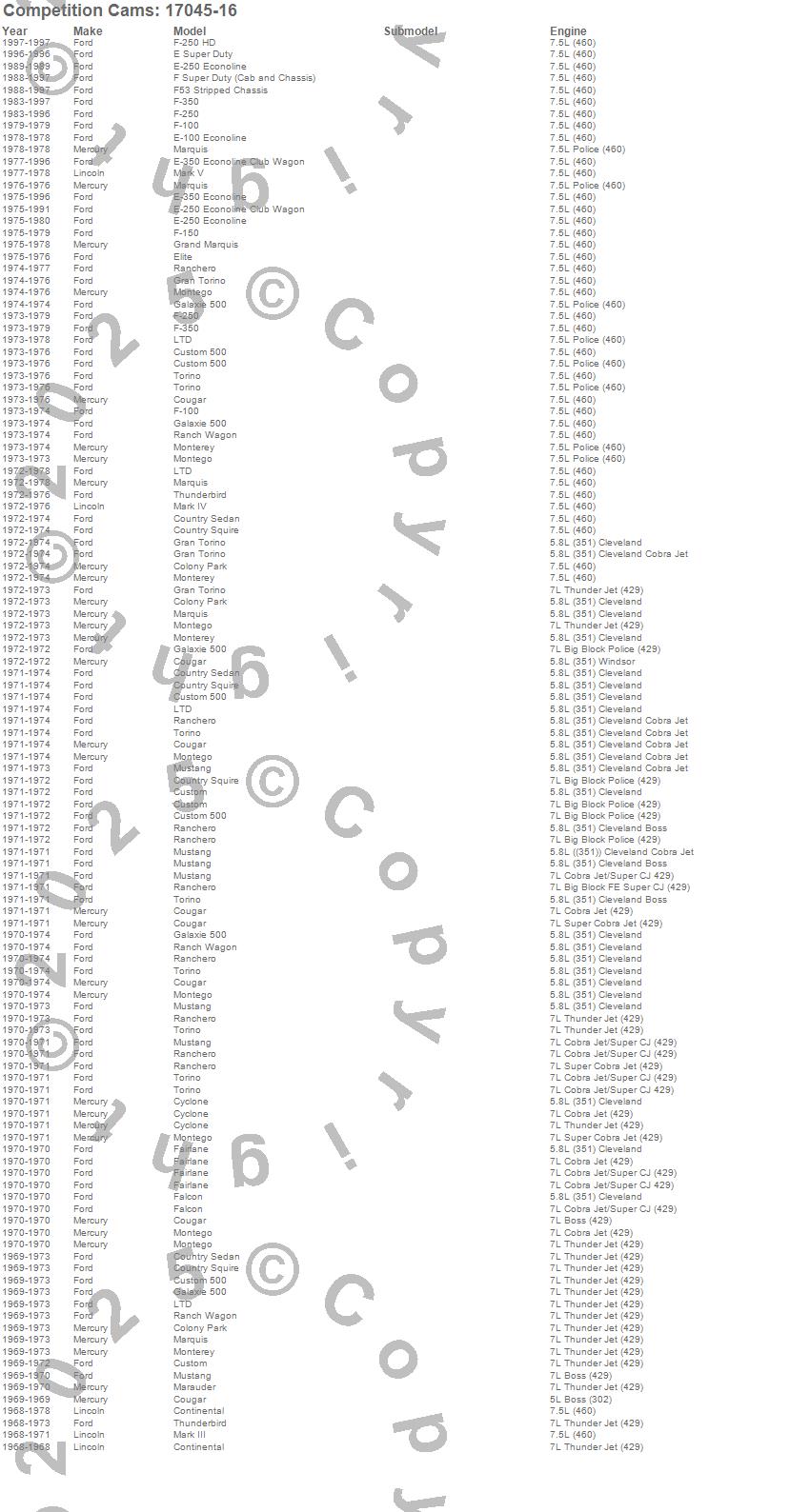 Colony Park, Continental, Cougar, Country Sedan, Country Squire, Custom, Custom 500, Cyclone, E Super Duty, E-100 Econoline, E-150 Econoline, E-250 Econoline, E-250 Econoline Club Wagon, E-350 Econoline, E-350 Econoline Club Wagon, Elite, F Super Duty, F-100, F-150, F-250