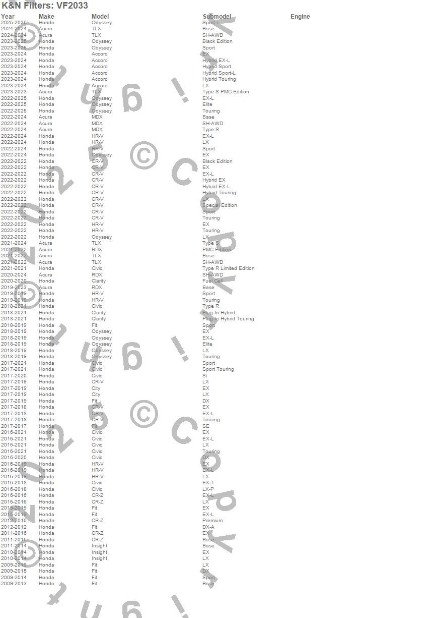 K&N Filters - Cabin Air Filter P/N VF2033 Features: