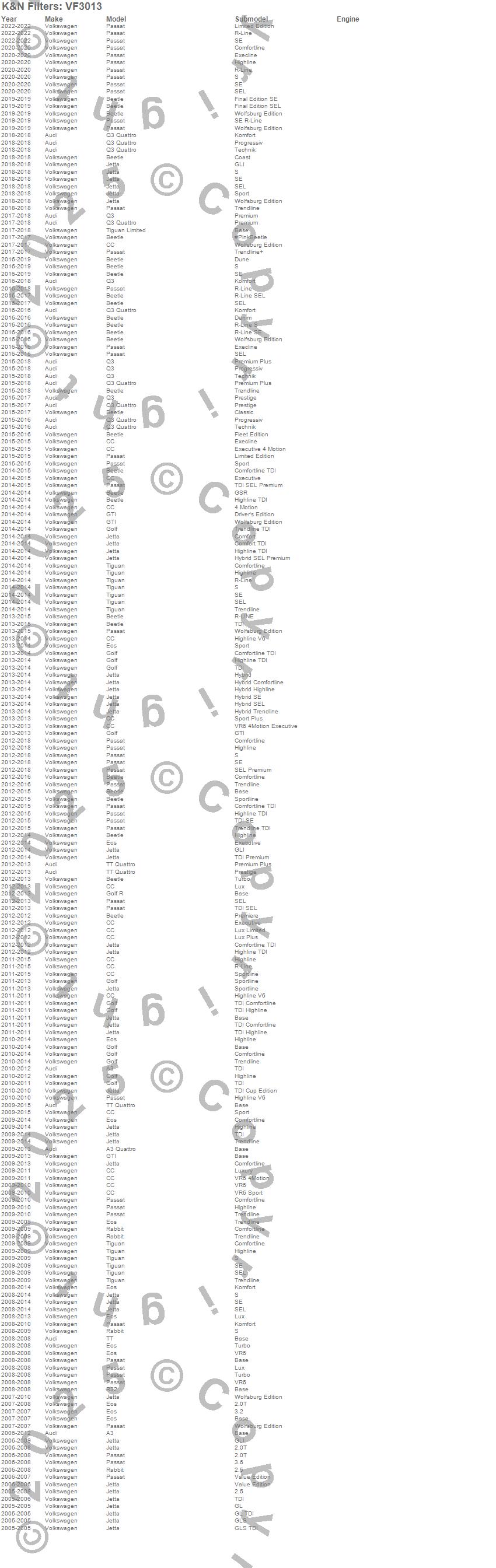 A3, A3 Quattro, Beetle, CC, Eos, Golf, Golf R, GTI, Jetta, Passat, Q3, Q3 Quattro, R32, Rabbit, Tiguan, Tiguan Limited, TT, TT Quattro, Audi, Volkswagen