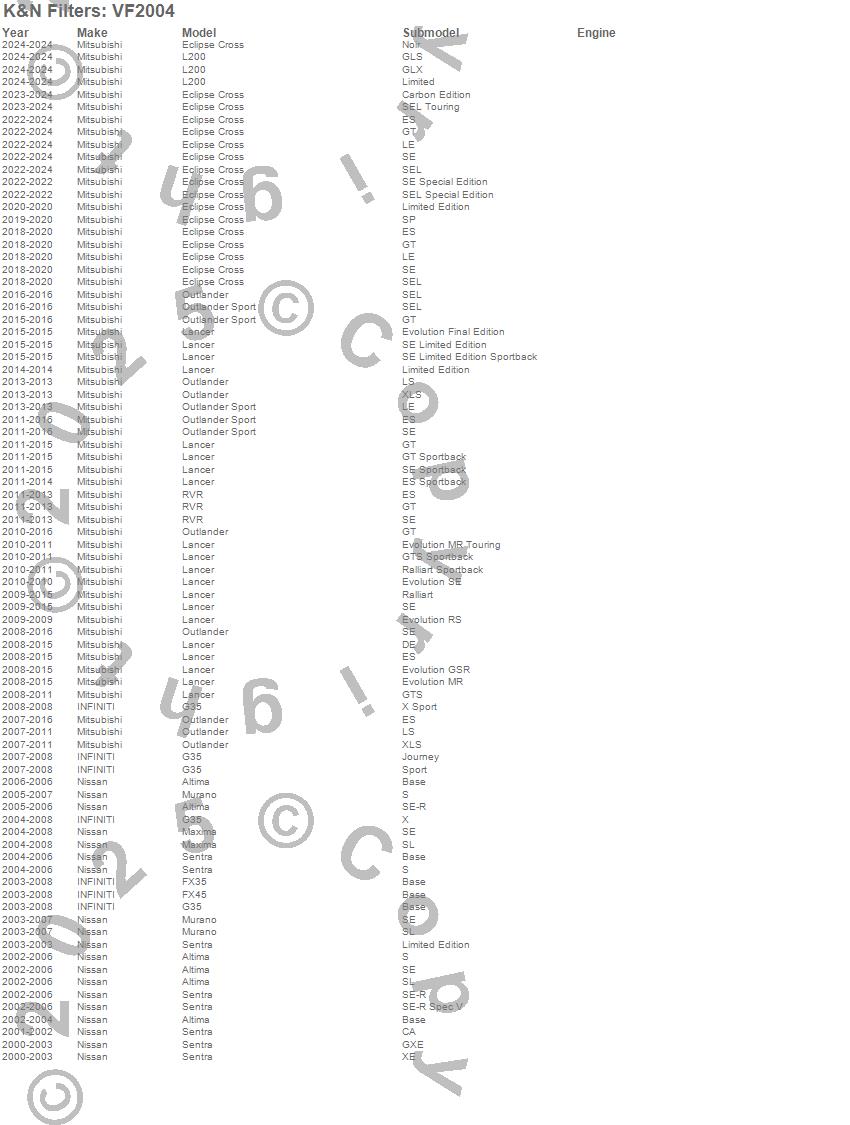 Altima, Eclipse Cross, FX35, FX45, G35, L200, Lancer, Maxima, Murano, Outlander, Outlander Sport, RVR, Sentra, VF6, VF7, INFINITI, Mitsubishi, Nissan, VinFast, 2025