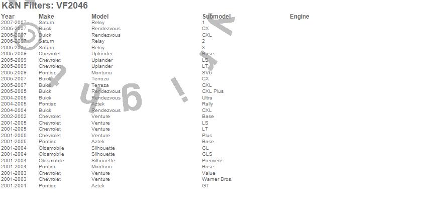 Aztek, Montana, Relay, Rendezvous, Silhouette, Terraza, Uplander, Venture, Buick, Chevrolet, Oldsmobile, Pontiac, Saturn, 2009, 2008, 2007, 2006, 2005, 2004, 2003