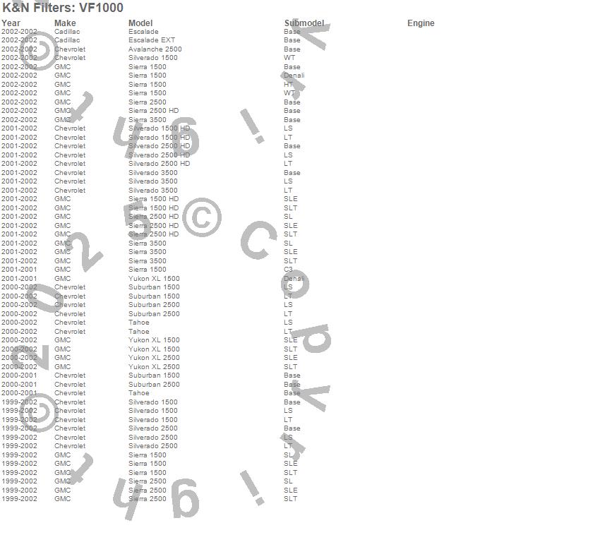 Avalanche 2500, Escalade, Escalade EXT, Sierra 1500, Sierra 1500 HD, Sierra 2500, Sierra 2500 HD, Sierra 3500, Silverado 1500, Silverado 1500 HD, Silverado 2500, Silverado 2500 HD, Silverado 3500, Suburban 1500, Suburban 2500, Tahoe, Yukon XL 1500, Yukon XL 2500, Cadillac, Chevrolet