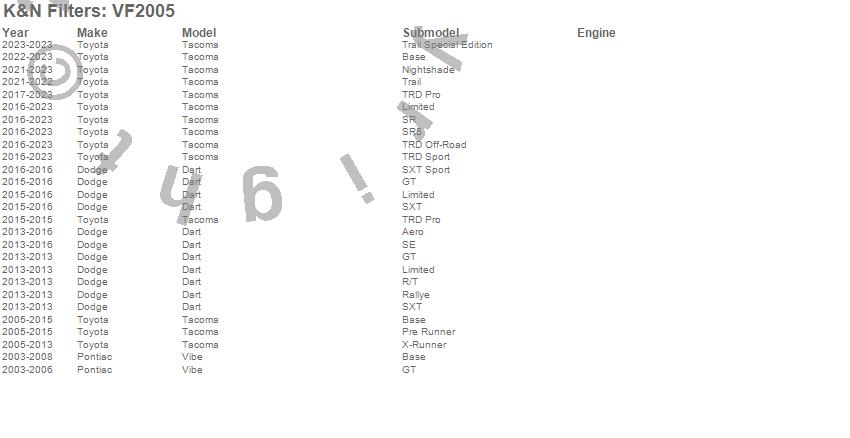 Dart, Tacoma, Vibe, Dodge, Pontiac, Toyota, 2023, 2022, 2021, 2020, 2019, 2018, 2017, 2016, 2015, 2014, 2013, 2012, 2011, 2010