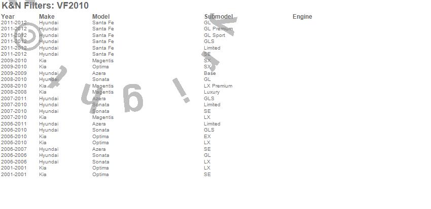 Azera, Magentis, Optima, Santa Fe, Sonata, Hyundai, Kia, 2012, 2011, 2010, 2009, 2008, 2007, 2006, 2001