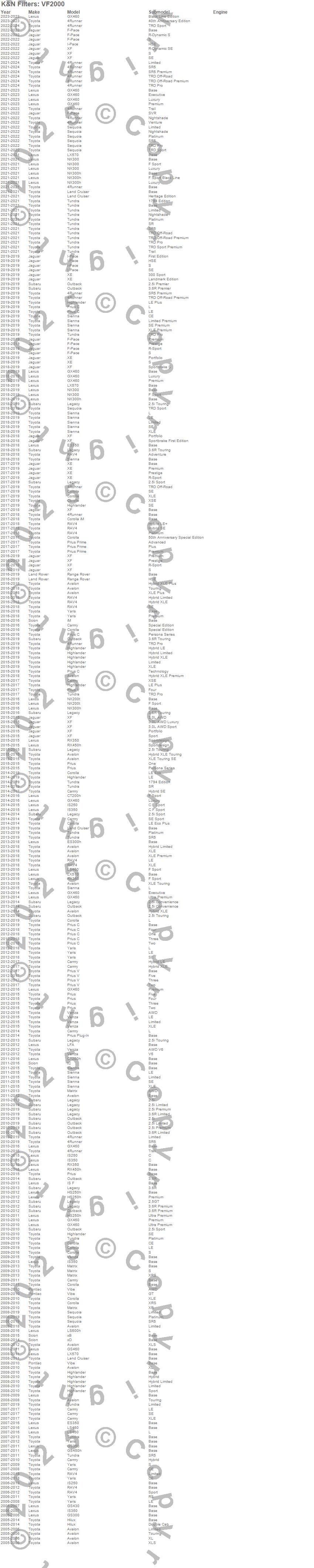 4Runner, Avalon, Camry, Corolla, Corolla iM, CT200h, ES300h, ES350, F-Pace, GS300, GS350, GS430, GS450h, GS460, GX460, Highlander, Hilux, HS250h, I-Pace, iM