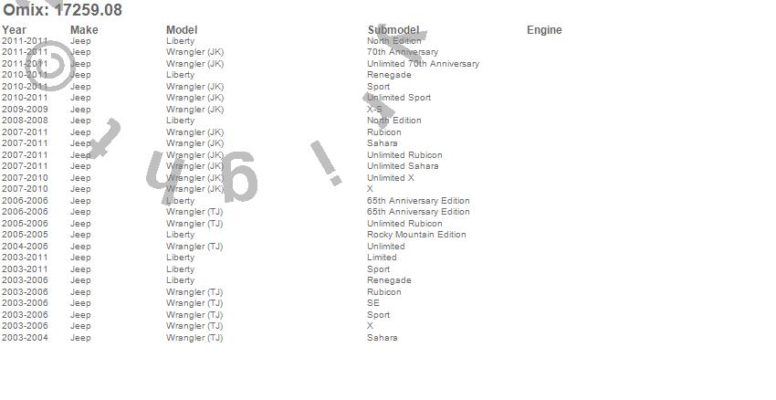 Liberty, Wrangler (JK), Wrangler (LJ), Wrangler (TJ), Jeep, 2011, 2010, 2009, 2008, 2007, 2006, 2005, 2004, 2003