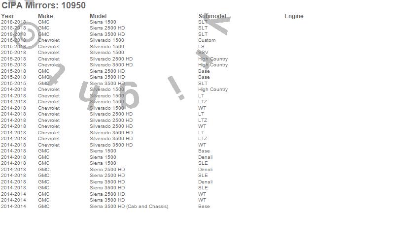 Below is an abbreviated list of applications for the Custom Towing Mirror Set.