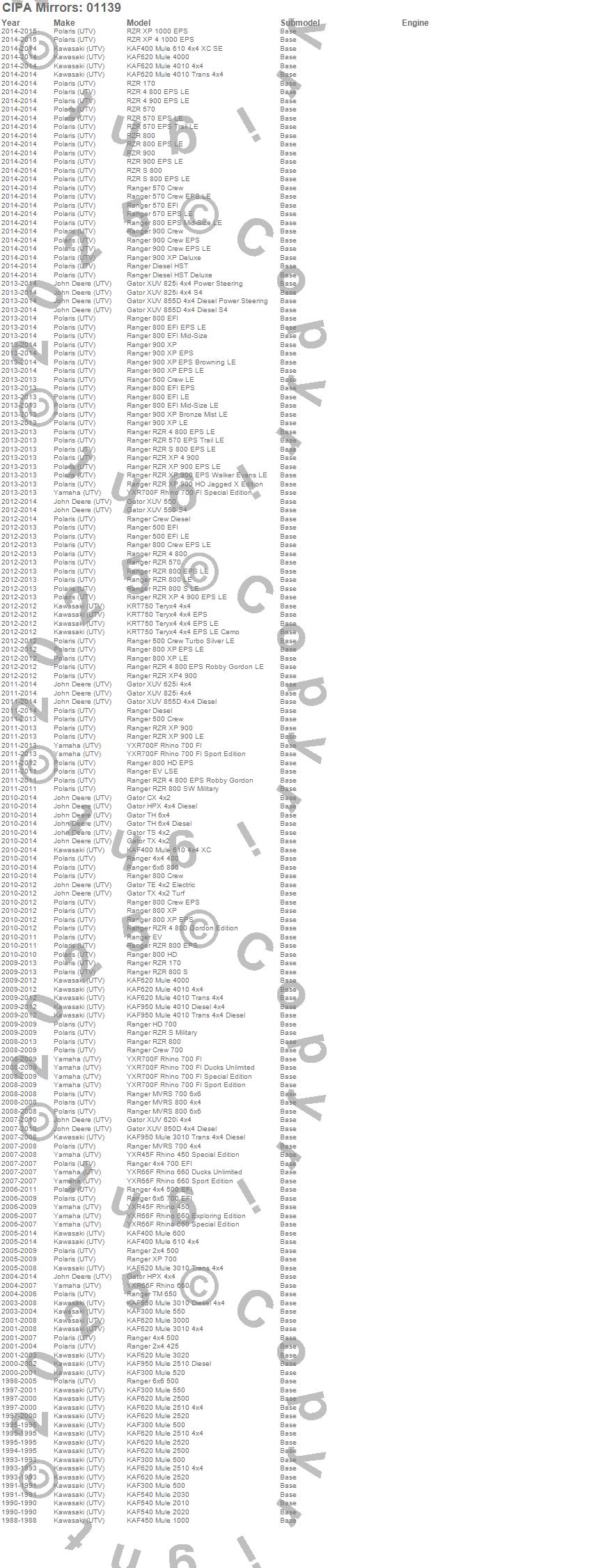 CIPA Mirrors - UTV Mirror P/N 01139 Features: