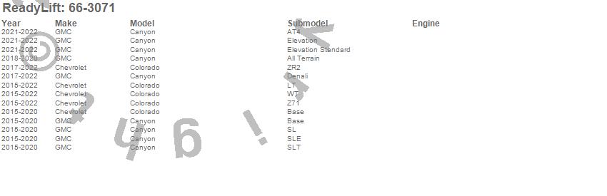 ReadyLift - Front Leveling Kit P/N 66-3071 Features: