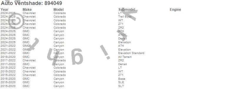 Below is an abbreviated list of applications for the Ventvisor Low Profile Deflector 4 pc..