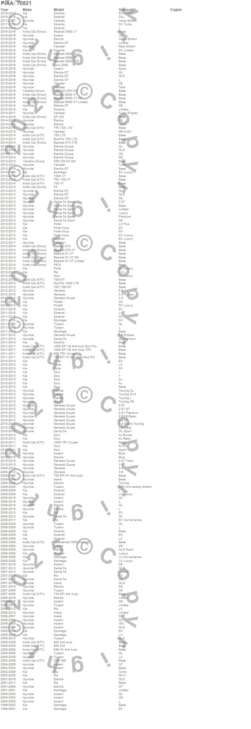 1000 EFI H2 4x4 Auto Mud Pro, 1000 EFI H2 4x4 Auto TRV, 1000 TRV Cruiser, 1000 XT, 500 4x4, 500 4x4 Auto, 550 TRV Cruiser, 650 H1 4x4 Auto, 700 EFI 4x4 Auto, 700 EFI H1 4x4 Auto, 700 EFI H1 4x4 Auto Mud Pro, 700 LTD, 700 XT, 700i GT, Accent, Azera, Bearcat 2000 LT, Bearcat 2000 XT, Bearcat 2000 XTE, Bearcat 3000 LT