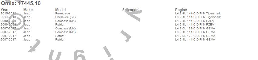 Cherokee (KL), Compass, Patriot, Renegade, Jeep, 2018, 2017, 2016, 2015, 2014, 2013, 2012, 2011, 2010, 2009, 2008, 2007