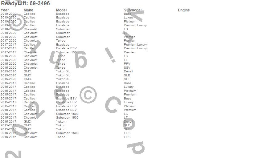 ReadyLift - SST Lift Kit P/N 69-3496 Features: