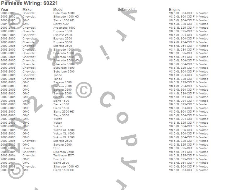 Below is an abbreviated list of applications for the Fuel Injection Wiring Harness.