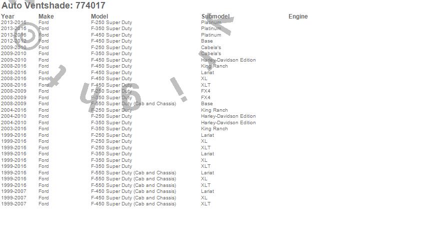 Below is an abbreviated list of applications for the Ventvisor Low Profile Deflector 4 pc..