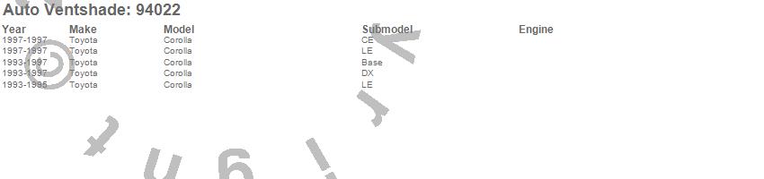 Below is an abbreviated list of applications for the Ventvisor Deflector 4 pc..