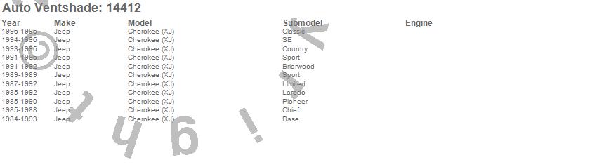 Cherokee (XJ), Jeep, 1996, 1995, 1994, 1993, 1992, 1991, 1990, 1989, 1988, 1987, 1986, 1985, 1984