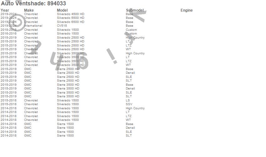 Below is an abbreviated list of applications for the Ventvisor Low Profile Deflector 4 pc..