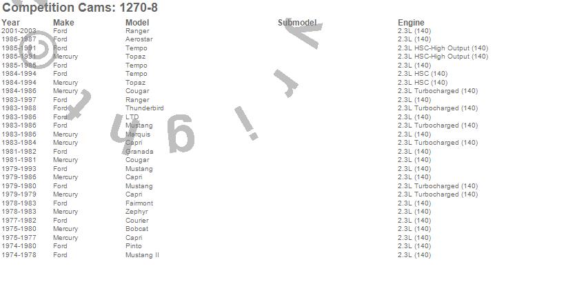 Aerostar, Bobcat, Capri, Cougar, Courier, Fairmont, Granada, LTD, Marquis, Mustang, Mustang II, Pinto, Ranger, Tempo, Thunderbird, Topaz, Zephyr, Ford, Mercury, 2003