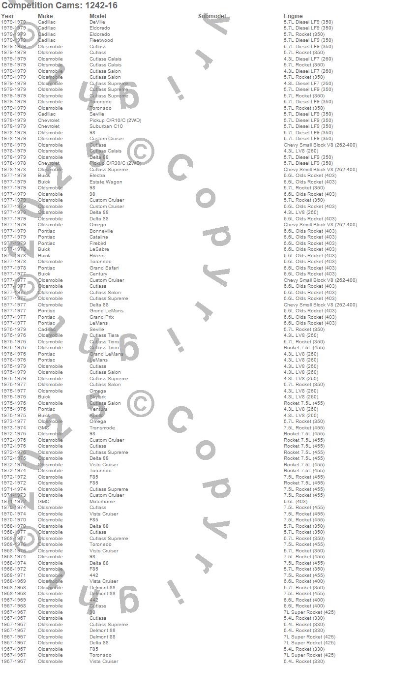 Below is an abbreviated list of applications for the High Energy Steel Rocker Arm Set.