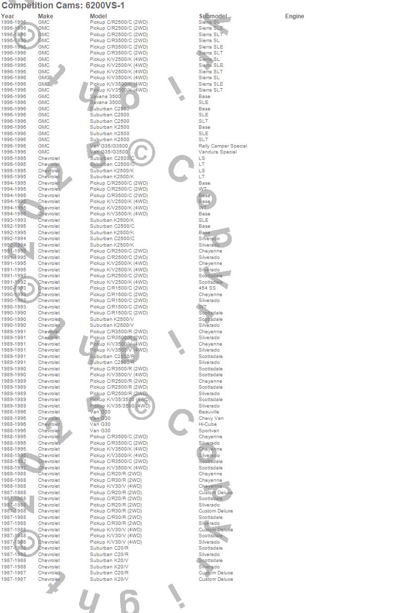 C1500 Pickup, C2500 Pickup, C2500 Suburban, C3500 Pickup, G30 Van, G35/G3500 Van, K2500 Pickup, K2500 Suburban, K3500 Pickup, R20 Pickup, R20 Suburban, R2500 Pickup, R2500 Suburban, R30 Pickup, R3500 Pickup, Savana 3500, V20 Suburban, V2500 Suburban, V30 Pickup, V3500 Pickup