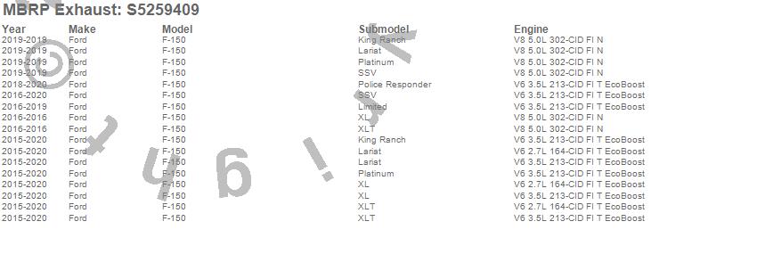 Below is an abbreviated list of applications for the Armor Plus Cat Back Exhaust System.