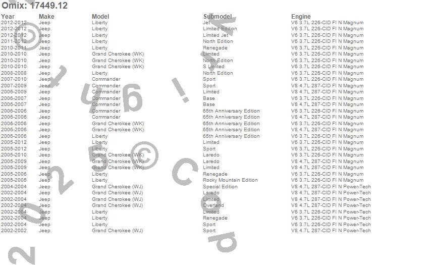 Commander, Grand Cherokee (WJ), Grand Cherokee (WK), Liberty, Jeep, 2012, 2011, 2010, 2009, 2008, 2007, 2006, 2005, 2004, 2003, 2002