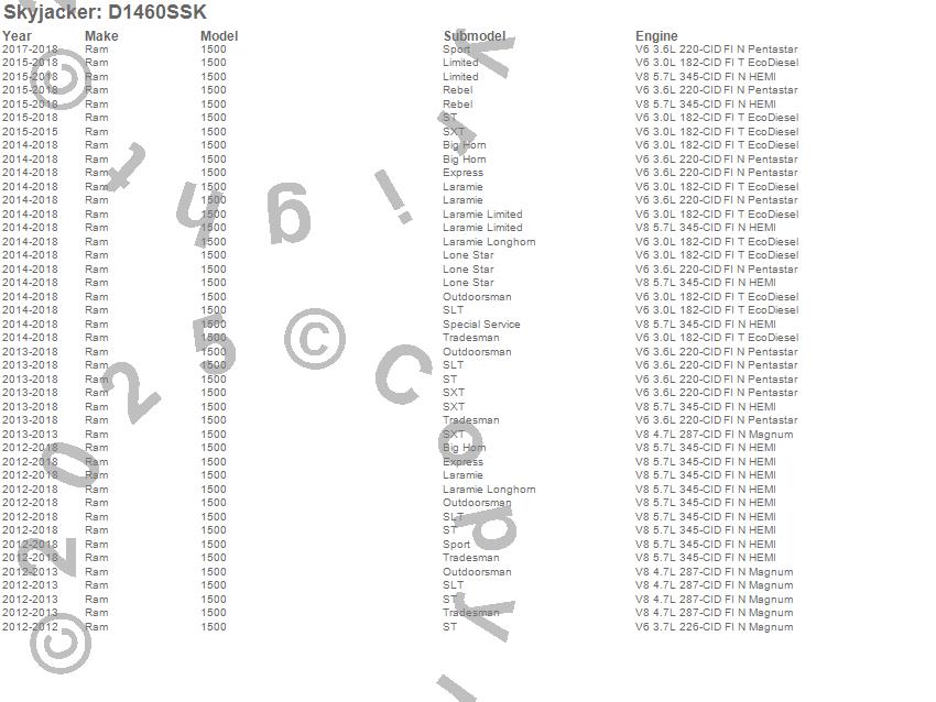 1500, Ram, 2018, 2017, 2016, 2015, 2014, 2013, 2012