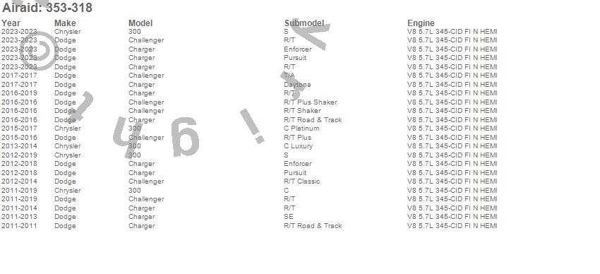 Below is an abbreviated list of applications for the AIRAID Cold Air Dam Air Intake System.