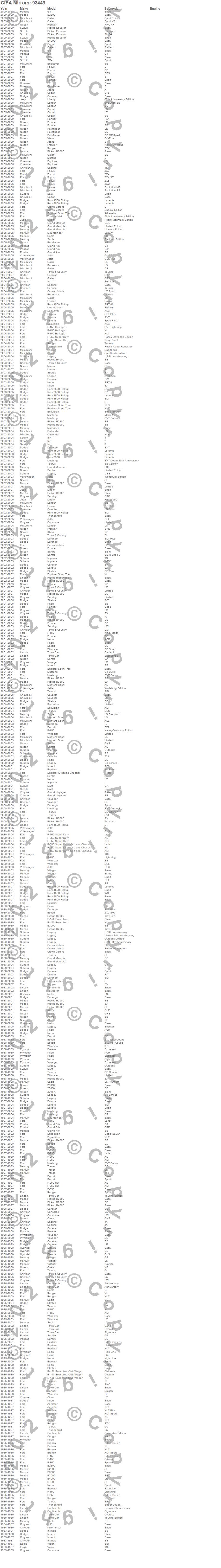 200SX, Aerostar, Altima, B2300, B2500, B3000, B4000, Baja, Blackwood, Breeze, Bronco, Caravan, Cavalier, Cirrus, Cobalt, Concorde, Continental, Cougar, Crown Victoria, Dakota