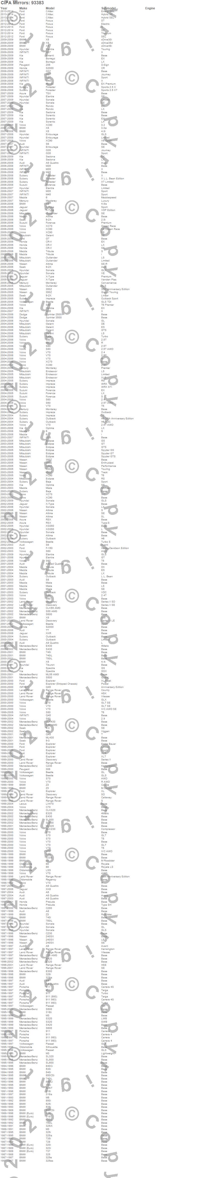 206, 240SX, 306, 316i, 318i, 318is, 318ti, 320i, 323i, 323is, 325, 325e, 325es, 325i, 325is, 325iX, 328i, 328is, 350Z, 525i