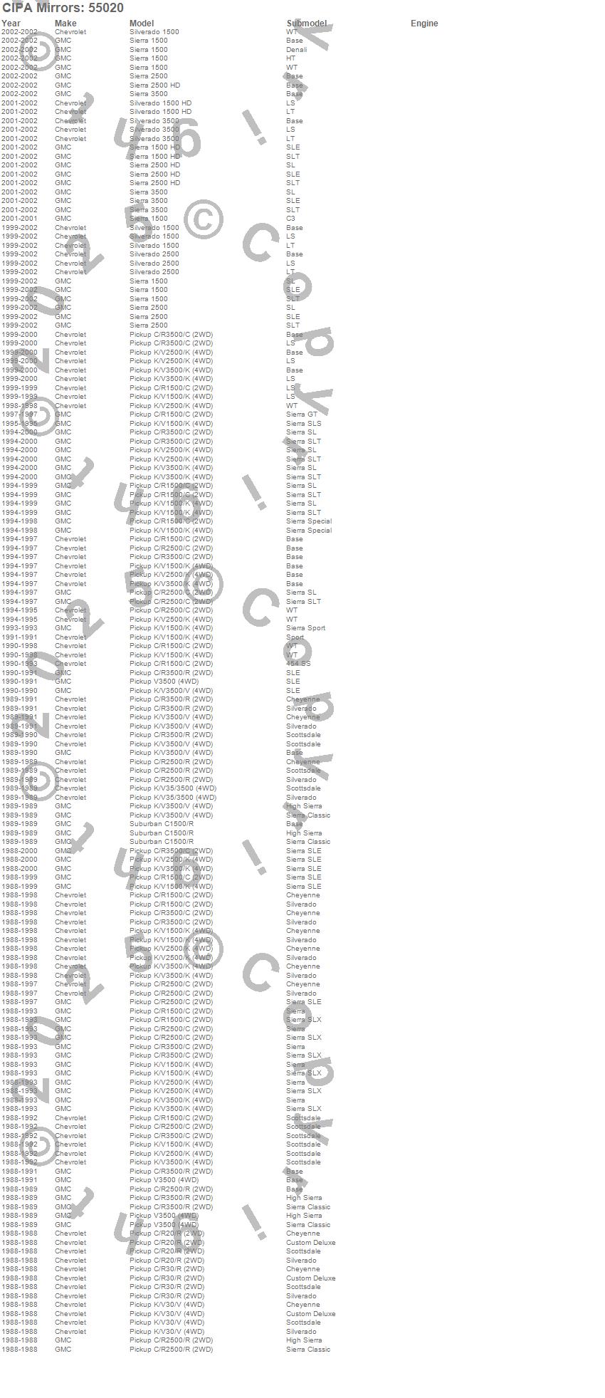 Below is an abbreviated list of applications for the OE Replacement Mirror.