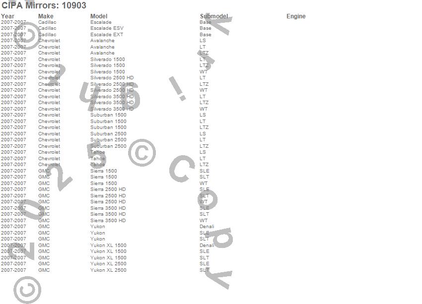 Avalanche, Escalade, Escalade ESV, Escalade EXT, Sierra 1500, Sierra 2500 HD, Sierra 3500 HD, Silverado 1500, Silverado 2500 HD, Silverado 3500 HD, Suburban 1500, Suburban 2500, Tahoe, Yukon, Yukon XL 1500, Yukon XL 2500, Cadillac, Chevrolet, GMC, 2007