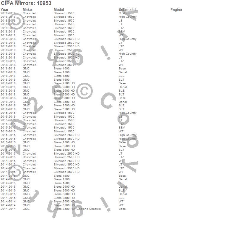 CIPA Mirrors - Custom Towing Mirror Hardware P/N 10953 Features: