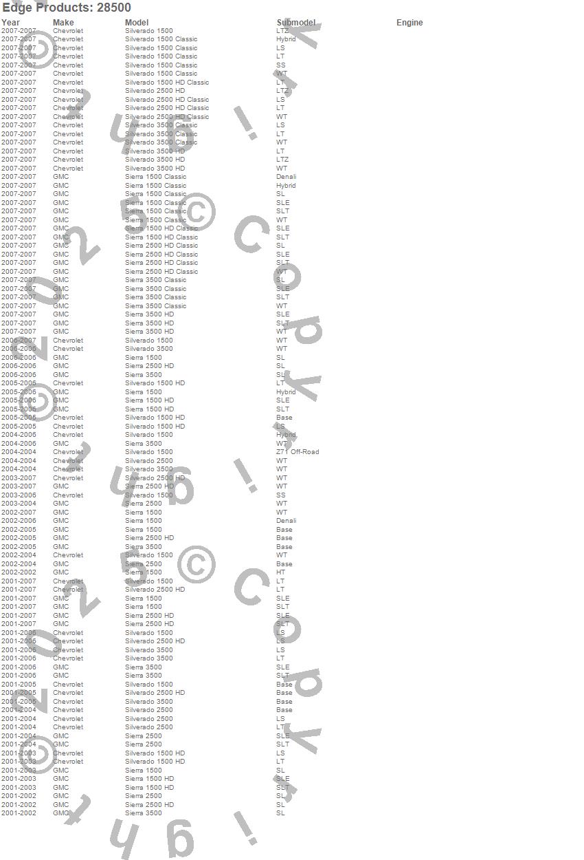 Sierra 1500, Sierra 1500 Classic, Sierra 1500 HD, Sierra 1500 HD Classic, Sierra 2500, Sierra 2500 HD, Sierra 2500 HD Classic, Sierra 3500, Sierra 3500 Classic, Sierra 3500 HD, Silverado 1500, Silverado 1500 Classic, Silverado 1500 HD, Silverado 1500 HD Classic, Silverado 2500, Silverado 2500 HD, Silverado 2500 HD Classic, Silverado 3500, Silverado 3500 Classic, Silverado 3500 HD