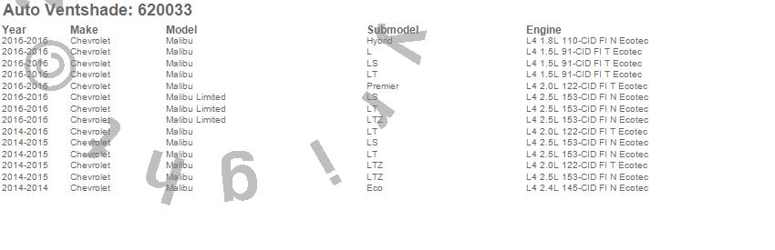 Below is an abbreviated list of applications for the Aeroskin Chrome Hood Protector.