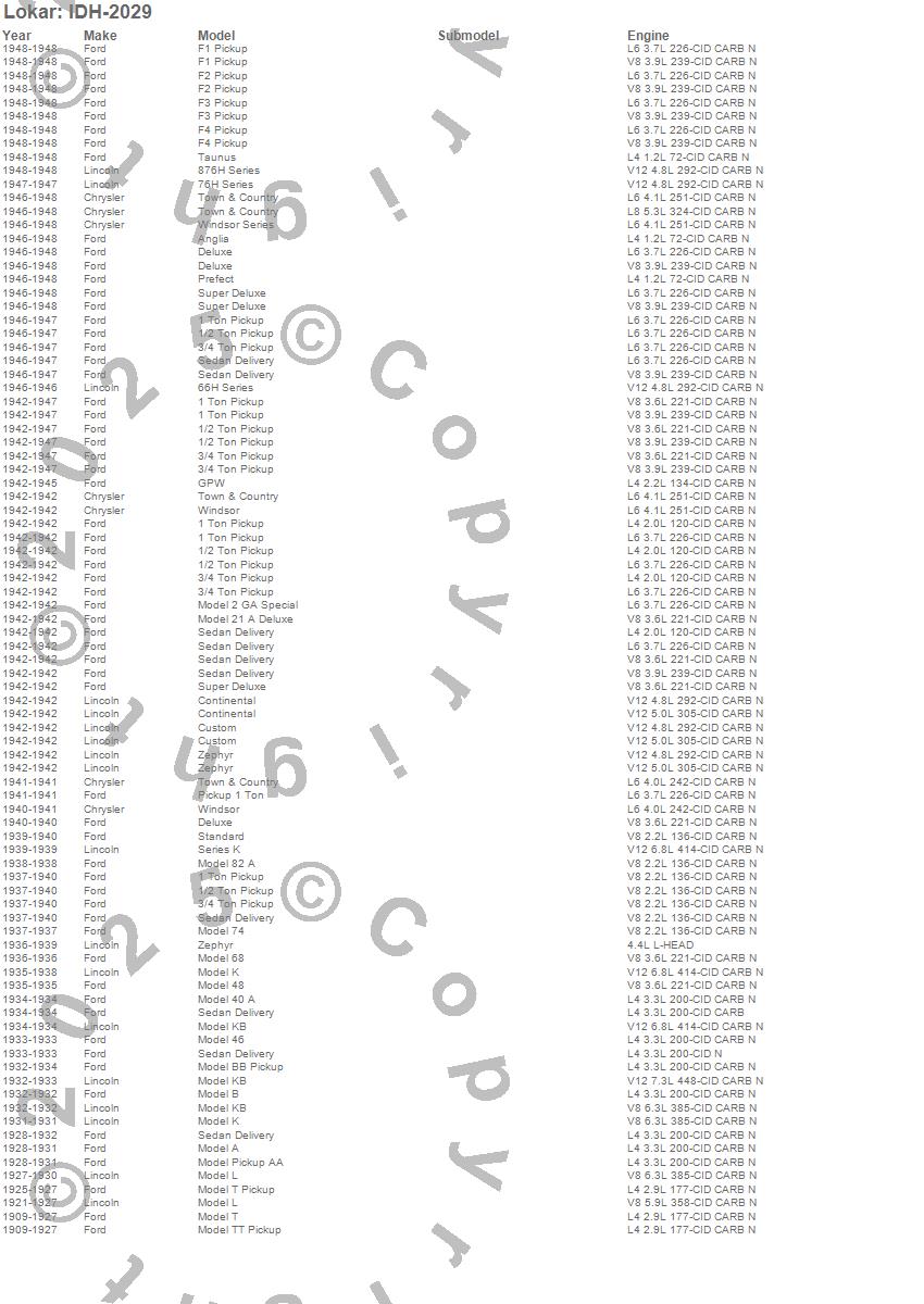 1 Ton Pickup, 1/2 Ton Pickup, 3/4 Ton Pickup, 66H Series, 76H Series, 876H Series, Anglia, Continental, Custom, Deluxe, F1, F2, F3, F4, GPW, Model 2 GA Special, Model 21 A Deluxe, Model 40 A, Model 46, Model 48