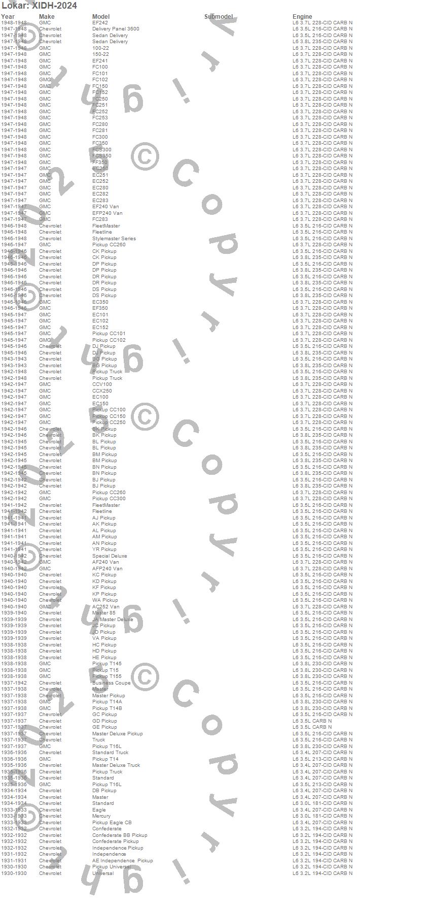 100-22, 150-22, AC252 Van, AE Independence Pickup, AF240 Van, AFP240 Van, AJ Pickup, AK Pickup, AL Pickup, AM Pickup, AN Pickup, BG Pickup, BJ Pickup, BK Pickup, BL Pickup, BM Pickup, BN Pickup, Business Coupe, CC100, CC101