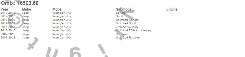 Wrangler (JK), Jeep, 2018, 2017, 2016, 2015, 2014, 2013, 2012, 2011, 2010, 2009, 2008, 2007