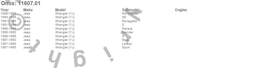Wrangler (YJ), Jeep, 1995, 1994, 1993, 1992, 1991, 1990, 1989, 1988, 1987
