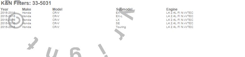 Below is an abbreviated list of applications for the Air Filter.