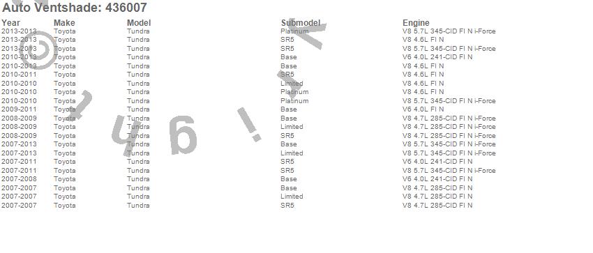 Below is an abbreviated list of applications for the Aeroskin II Hood Protector Textured Black.